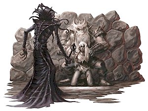 Along the walls, humanoid forms lay or slumped huddled on the floor. Some moaned and writhed, others were still; some were human, elf or Gith; some were Ithilid; and some were an obscene half-way between. Alerted by screams of terror, Hildraft and Surya pressed forwards through the caves and came on a dreadful scene. Held helpless by two Githmorein warriors, a young woman - an elf, they noticed - was being forced to kneel as a Mind Flayer approached her, carrying one of the tadpole-creatures in a pair of pincers. The vile, slimy little shape wriggled and squirmed, almost in eagerness. This was the ulltimate horror of the unspeakable Mind Flayer life cycle. Ceremorphosis. Once implanted through ear, nostril or eye, the tadpole would eat its' way into the hapless victim's brain over several days, consuming nervous tissue and gaining mass at a nearly equal rate. When the process was completed, the victim's brain would be completely replaced by the tadpole's bloated tissue, neurologically melded onto the remains of the lower brainstem and assuming complete control of the body's nervous system. The victim would then be dead, but with their body living on with a parasite - rapidly emerging into sentience - serving as its' brain. A further process of transformation would change the body tissue's structure into that of Ithilid flesh, and a new Mind Flayer would be born.