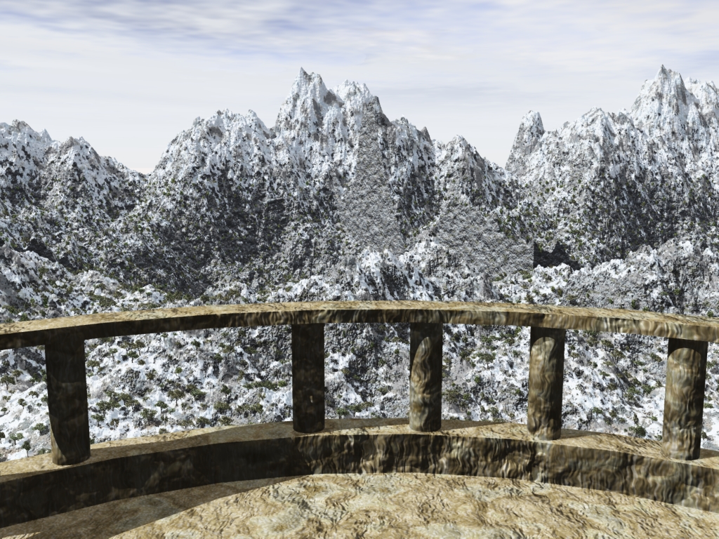 first thing they noticed was that it was cold. From the lower reaches of the Versate Pass they had instantaneously moved nearly two hundred miles into the mountains and several thousand feet up. They were standing on a stone balcony carved out of the living rock of the mountain. The stone was worn, and the stone ballustrade around the edge had several gaps in it, telling of considerable age.