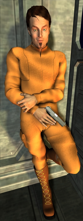 Many of Manxolio's peers shipped out with the Imperial or Ramalux forces, but being a soldier had never appealed to him. For all his solid, heavy frame, normal for a high-G childhood, his approach ran more to the improvisational than the confrontational. Day after day he watched the port, not quite sure what he was waiting for, and finally it came. A boldly-decorated starship, gold from nose to fins landed one day, and advertisements appeared on the planetary 'net and on walls, proclaiming that the First Church of Nawheen would proclaim the True Word to the faithful and the curious, tonight and every night this week.