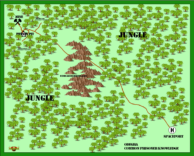 Before much longer they'd selected the poison of a particular plant from Odegra's nightmare flora, one that produced unconsciousness, fever and facial discoloration. Gripper had assembled some drugs from the medical kits that could simulate the fever and render the 'casualties' unconscious, and some that would simulate the facial marks. Reviewing the cons, they had picked out Slippers, Benkin, Hurker and Spanners as the least useful in overpowering the shuttle crew and stealing it and this suitable for playing the part of casualties. Burkins, near-blind as he was, had displayed his tactical genius over and over in the planning, and was military after all - if he could see it, he could shoot it. Joe the Zho was also handy with a gun as well as being the backup pilot if Gripper came to grief. Taxi would be needed to to drive the crawler, of course, and could use a laser carbine moderately well. Scarrow was so deadly that even if his blade skills had not been potentially useful, no-one would have dared suggesting using him as a casualty. He was also the cons' only trained astrogator.