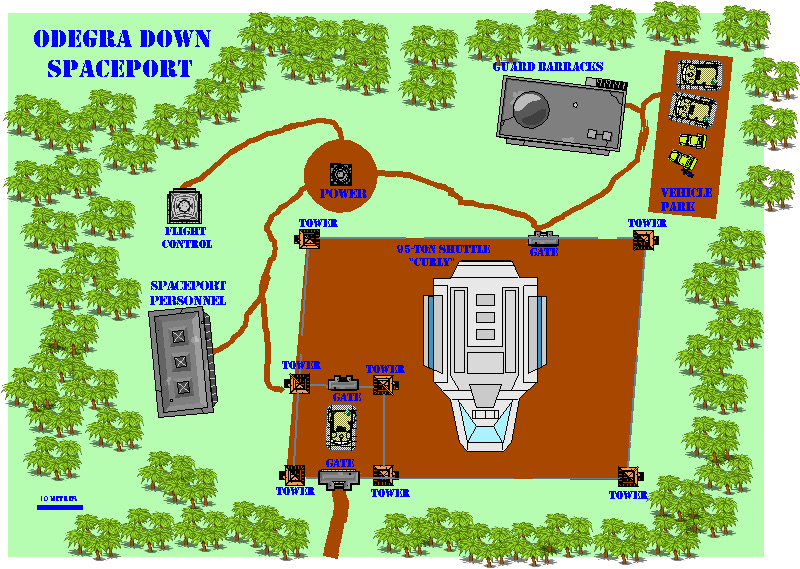 Four hours later, the four sat around Minion and queried it about the spaceport towards which they were heading. He delivered a personnel manifest for the 'port (5 technicians, 10 wardens, 2 crew for whichever shuttle was dirtside) and a schematic. Yes, the power station was the only one. Yes, he could interface with Flight Control's computers to check the shuttle Curly's status - but not at this range. No, he couldn't fly Curly. Yes, he could get plans of the building interiors. No, he couldn't override local control and shut down the power plant; I am not programmed for aggressive computing he announced primly. "But you could be," suggested Gripper. Yes. "I could do that," claimed Martha, but no-one took her up on the suggestion.