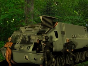 Alice turned back to Minion and demanded a complete personnel list for the facility. The list appeared in moments, twenty-four scientists, five admin staff and five corptroopers. Confident they'd dealt with all the corptroopers in the Terbium wing, they spent a few minutes poking through the labs in the south wing, passing over the crushers, refining furnace and the testing rooms with the funny-looking wooden models of starships with grids of terbium connected through to the monitoring room at the end. Nothing caught their attention, and - conscious of passing time - they headed for the crawler garage.