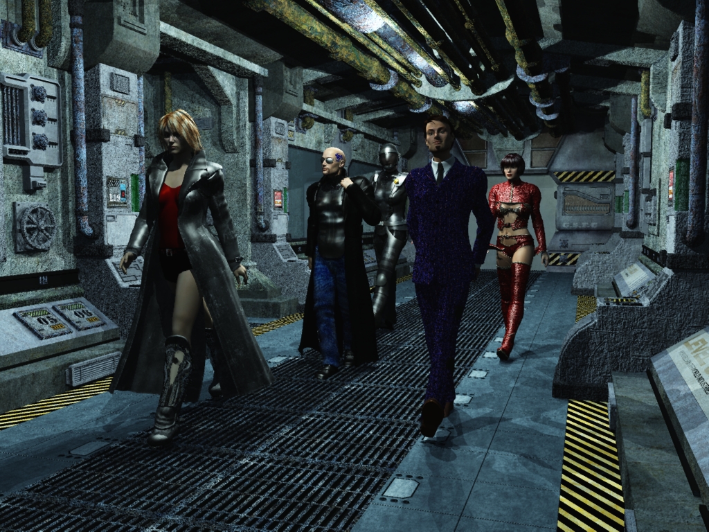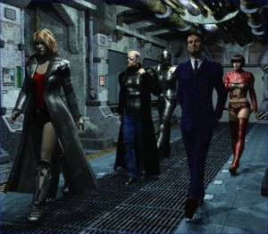 A familiar and irritating cockney voice sleazed out of the speakers. "Good evenin' laydeez'n'gents," said Everett Steel, "'ere we are, on schedule, to finish our business. No need to get all panicky now!" Muttering, the four left the bridge and headed down to the cargo hold as Steel's vessel lined itself up and extended a docking tube. "Last chance - do we want to lose anyone else?" asked Martha. No-one had changed their minds, so the decision was left as 'just the Exismolia's original crew'.