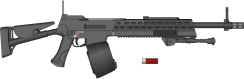 Manx had his eye on something a little less military; a fully-automatic shotgun. The floorwalker eyed his modest physique. "Have you used one before?" she asked, "they're kinda heavy." Manx nodded confidently, and the floorwalker handed him the stubby weapon. Liking the balance, he put it on the pile and added several boxes of ammunition for it. His next errand was on behalf of Gripper; a sniper's rifle. Armenaur's didn't carry the specialist sniper model of the gauss rifle, but did have a rather nice example of the breed in a CPR slugthrower. "We can throw in chaemelon surface for an extra Cr500," said the floorwalker hopefully, and Manx nodded, requesting a box of cartridges of each available type. The last thing he asked for was a really good concealable nonmetallic pistol. "Ah yes," said the floorwalker, "we have them in single-shot-throwaway, automatic and revolver." He paused. "To be honest," he said quietly, "the automatics tend to jam. Take the revolver." Manx grinned and followed the advice.