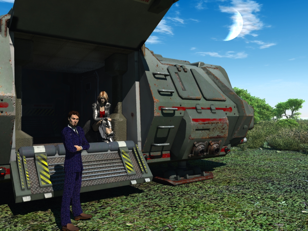 Alice and Manx announced to the crew that they were going to take the launch up and scout for suitable farmlands for Taxi. "Come on Hurker, we'll need to call him if we find something," she added casually, "do you know anything about farms?" Hurker shook his head. "I know about farmers' daughters, though, hur hur hur," he answered. Alice suppressed a grimace. "Well, come on then, we'll see if we can find something suitable for you," she said .. truthfully in some ways.