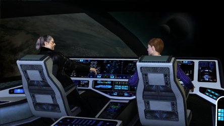 That evening, the command crew and Wallis met again, in a quiet bar outside the theatre where they could hear themselves speak. The idea of a replacement starship appealed to them, and Wallis commented she'd observed their interest in the sleek courier parked at the landing bay. "You would be welcome to one of those; we use them as couriers within the company. They're fast, but big enough for you." Gripper chuckled. "Can we take a test drive?" he asked. "I'll arrange it," said Wallis. "We can do away with your existing ship, too," she continued. "If we file a plan and guide her out to jump point with a robot and jump into nowhere, it will help cover your tracks." Alice coughed. "There are four frozen convicts aboard," she admitted. "Their records were scrubbed, so we don't know who or what we have in there, but we wouldn't want to see them dealt with unfairly." Wallis didn't blink. "I'm sure we can find a use for them," she said blandly. "If we stash them for a hundred years or so and then thaw them out, they won't be noticable any more and we can hire them on." A small smug smile appeared. "They'll owe us for low storage, so they'll need to work."
