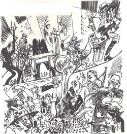 This time he was a little further back, able to see them all, and their numbers turned some switch over in his head. This wasn't a serious-looking businesswoman looking at him a little sceptically; it was an audience! All his old confidence swept over him in a rush, and with a grin and a flourish of his long hands he was off and running.