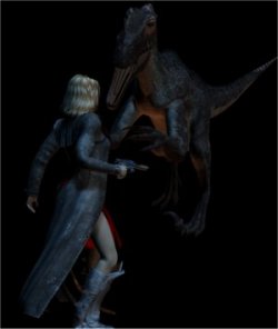A single reptile was lurking near the hotel's main entrance, close enough to the wall that the cons on the fourth floor couldn't see it. As she looked around, checking for more, Alice noticed Rosalie Walis sprawled close by, blood oozing from a horrific bite wound across her chest. Alice carefully aimed and shot the lurking lizard, once more disabling it by shattering its' legs. In the better light she got her first proper look at it, and recognized it, although only from books.... It was a dinosaur. What the hell were dinosaurs doing on Inversar? Scooping up Wallis, she patted the woman's cheek to bring her round, then supported her as the two headed into the hotel buildings.