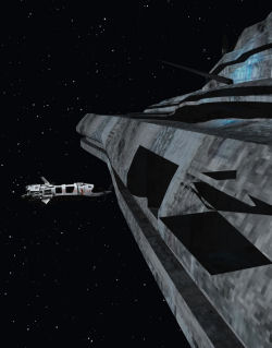 Emerging from jumpspace, the crew of the Vanguard were given an object lesson as to the power and resources of their corporate patron. The Damagan was vast, a whale to their craft's minnow, and surrounded by cutters and lighters as she fitted out. Their computer flickered to life as a flight path was transmitted to take them to one of the two hundred dton hangars. As she settled in and was secured, a purser's assistant robot appeared to show them to their quarters. Walking through the hangar deck among hurrying busy crewers, they passed stowed G-Carriers, speeders, cutters and a rack of planetary survey robots.